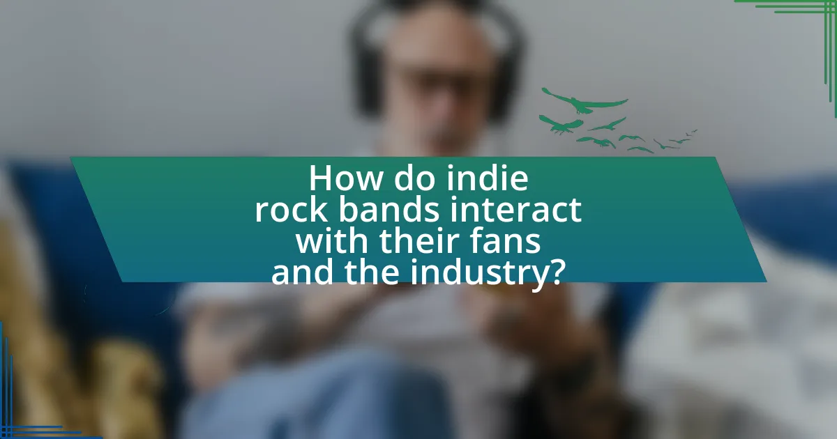 Indie rock bands interact with their fans and the industry primarily through social media, live performances, and grassroots marketing strategies. Social media platforms like Instagram, Twitter, and Facebook allow bands to engage directly with fans, share updates, and promote their music, creating a sense of community and loyalty. For instance, a study by the University of Southern California found that 78% of musicians use social media to connect with their audience, highlighting its importance in fan interaction.