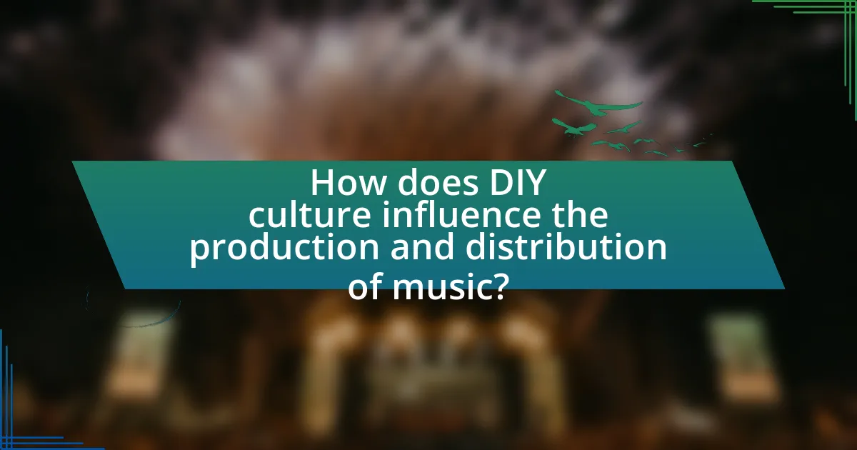 DIY culture significantly influences the production and distribution of music by empowering artists to create and share their work independently, bypassing traditional industry gatekeepers. This cultural movement has led to the rise of home recording technologies and affordable distribution platforms, enabling musicians to produce high-quality recordings without the need for major label support. For instance, the advent of digital audio workstations and platforms like Bandcamp and SoundCloud has democratized music distribution, allowing artists to reach global audiences directly. According to a 2020 study by the International Federation of the Phonographic Industry, independent artists accounted for 40% of global music revenues, highlighting the substantial impact of DIY practices on the music industry.